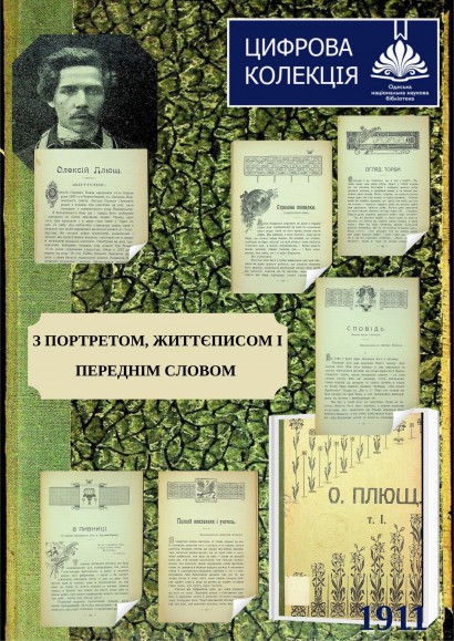 Plyushch O. Works: [In 2 vols.]. Vol. 1. With a portrait, biography and foreword / O. Plyushch ; [compiled and edited by I. Lypa] – Odesa : published by the Odesa Literary Union. Publishing house of Y. Fesenko VIII, 187, [4] p. : portrait.