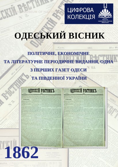 Одесский вестник. – Одесса, 1827-1893. – Газета политическая и литературная (1863-1879); газета политическая, экономическая и литературная (1880-1887 до № 339). - 1862.