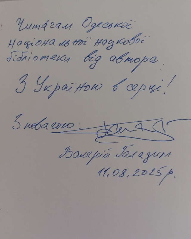 26 серпня 2025 р., до Дня пам’яті захисників України, які загинули в боротьбі за незалежність, суверенітет і територіальну цілісність України, Одеська національна наукова бібліотека запрошує на презентацію книжки Валерія Галадима «Стріляний горобець» (Львів: Літературна агенція «Піраміда», 2024) та творчу зустріч з її автором.