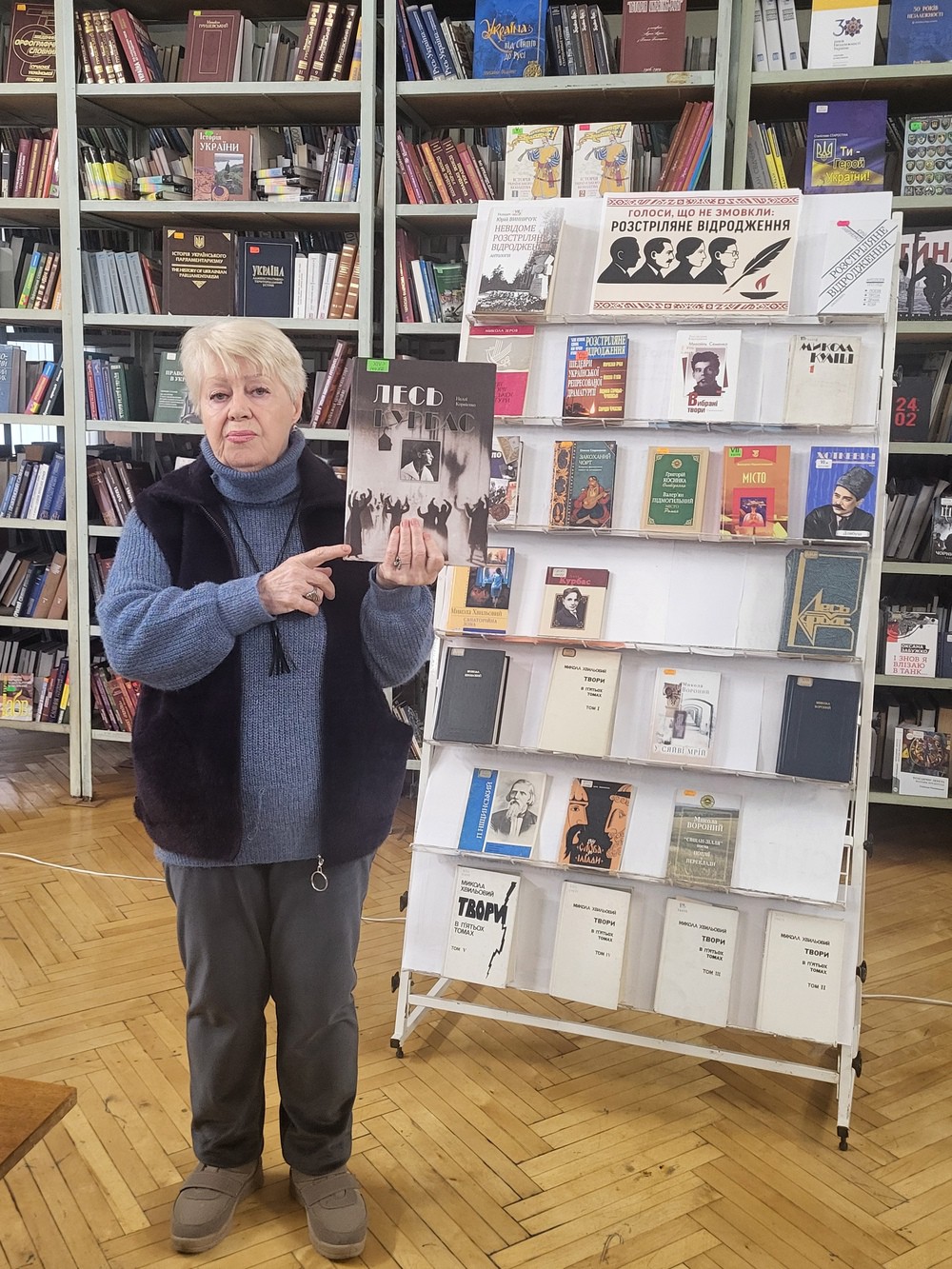 Викладачка коротко охарактеризувала їхній творчий внесок і звернула увагу на книжкову виставку «Голоси, що не змовкли: Розстріляне Відродження», підготовлену бібліотекарями.