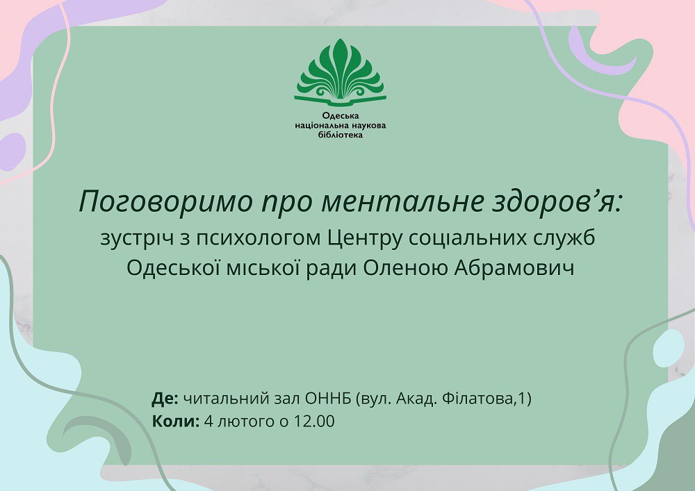 4 лютого в читальному залі ОННБ (вул. Акад. Філатова,1) відбулася зустріч зі спеціалістами Центру соціальних служб Одеської міської ради психологом Оленою Абрамович та соціальним педагогом Надією Шепелевою.