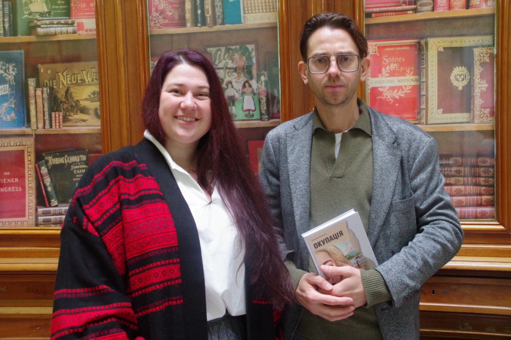 Валентин Богайчук, автор роману «Окупація», викладач Одеського національного економічного університету, керівник офісу євроінтеграції в Агенції Регіонального розвитку Одеської області, розповів, що поштовхом до написання книжки стала зустріч із неймовірно сміливою лікаркою Яною Калугіною, яка поділилася своєю історією життя в окупації, переїзду до Одеси та тими складними щоденними викликами й страхами, які увійшли в життя мирних людей внаслідок повномасштабного вторгнення військ рф на Херсонщину: «Я просто взяв олівець і почав записувати те, що чув від Яни. Не хотів писати про трагічні події, але ми живемо в такий час, коли неможливо обійти такі історії стороною. Ці свідчення важливі як для молоді, так і для прийдешніх поколінь. Герої книги «Окупація» — це не лише українці, а загалом люди, і саме цим вона цікава. У творі представлені не тільки позитивні персонажі, а й інша сторона подій — окупанти, які також є людьми, але прийшли на територію України з ворожими та хибними намірами. Яна вже перебувала в Одесі, коли я почав писати цю історію, і вона стала своєрідним символом перемоги. Це книга, де головний герой не чоловік з автоматом, а жінка з дитиною. Вона не лише про трагедію, а й про вибір, який цивільні в умовах війни та окупації змушені робити щодня, щоб жити та перемагати», — поділився автор. Він зачитав деякі особливо емоційні та щирі уривки з книжки.