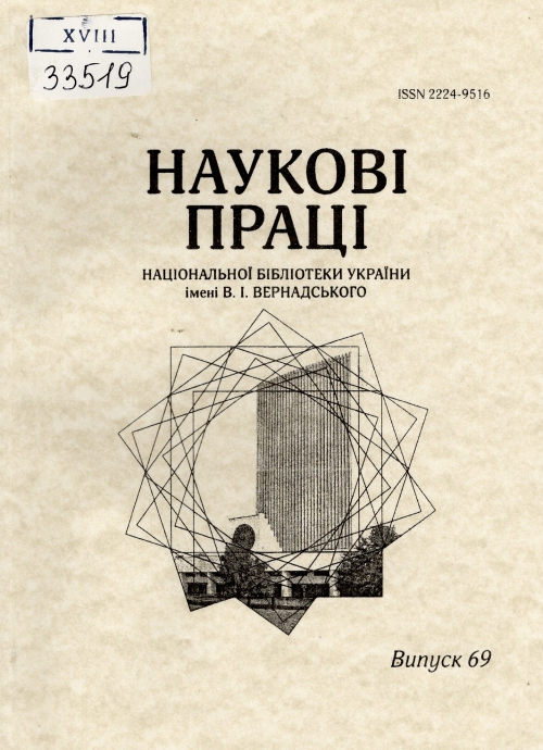 Наукові праці Національної бібліотеки України імені В. І. Вернадського : збірник / Засновник НАН України. Нац. б-ка України ім. В. І. Вернадського ; гол. ред. В. Горовий. – Київ : НБУ ім. В. І. Вернадського, 2023. – Вип. 69. – 376 с.