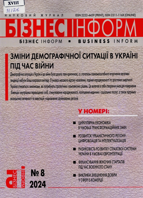 Бізнес Інформ = Бизнес информ = Business inform : наук. журн. / Засновник Наук.-дослід. центр індустріальних проблем розвитку НАН України, Харків. нац. економ. ун-т ім. С. Кузнеця ; гол. ред. В. С. Пономаренко. – Харків : Лібуркіна Л. М., 2024. – № 8 (559). – 465 с.