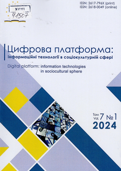 Цифрова платформа: інформаційні технології в соціокультурній сфері = Digital platform: technologies in the sociocultural area = Цифровая платформа: информационные технологии в социокультурной сфере : наук. журн. / Засновник Київ. нац. ун-т культури і мистецтв ; гол. ред. Ата Оразгельдийович Овезгельдиєв. – Київ : КНУКіМ, 2024. – Т. 7, № 1 .