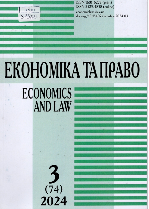 Економіка та право = Economy and law = Экономика и право : наук. журн. / Засновник НАН України. Ін-т економ.-правових досліджень, ДВНЗ "Донец. нац. техн. ун-т" ; гол. ред. В. А. Устименко. – Київ : Академперіодика, 2024. – № 3 (74). – 115 с.