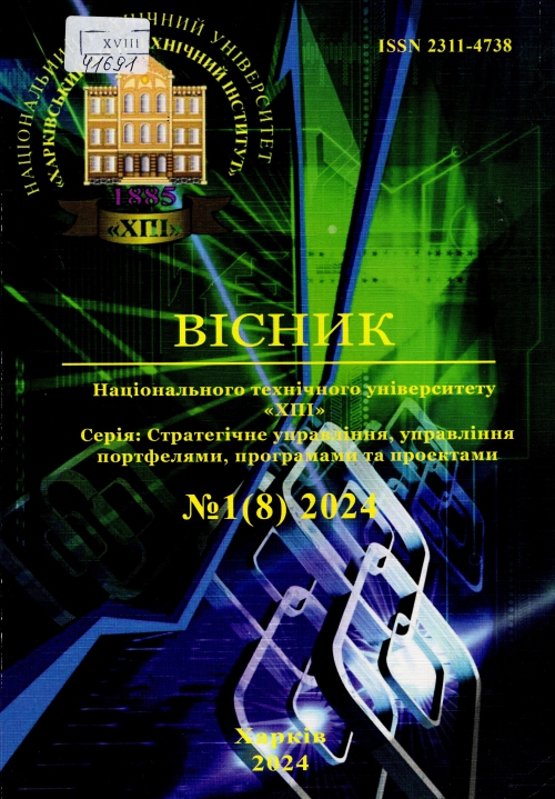 Вісник Національного технічного університету "Харківський політехнічний інститут". Серія : Стратегічне управління, управління портфелями, програмами та проектами : зб. наук. пр. / Засновник Нац. техн. ун-т "Харківський політехнічний інститут" ; гол. ред. Ігор Володимирович Кононенко. – Харків : НТУ "ХПІ", 2024. – № 1 (8). – 83 с.