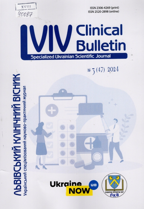 Львівський клінічний вісник = Lvivclinicalbulletin : укр. спец. наук.-практ. журн. / Засновник Львів. нац. мед. ун-т ім. Д. Галицького, ТОВ "Вид-во "Кирилиця" ; гол. ред. О. О. Абрагамович. – Львів : Кирилиця, 2024. – № 3 (47). – 109 с.