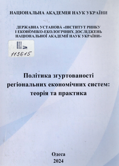 Політика згуртованості регіональних економічних систем: теорія та практика : монографія / Борис Володимирович Буркинський, Олександр Іванович Лайко, В. Ф. Горячук, В. М. Осипов, О. Ю. Білоус ; ДУ "Ін-т ринку і екон.-екол. досліджень НАН України" ; за наук. ред. Олександр Іванович Лайко. – Одеса : ДУ ІРЕЕД НАН України, 2024. – 549 с. : іл., табл., схеми.