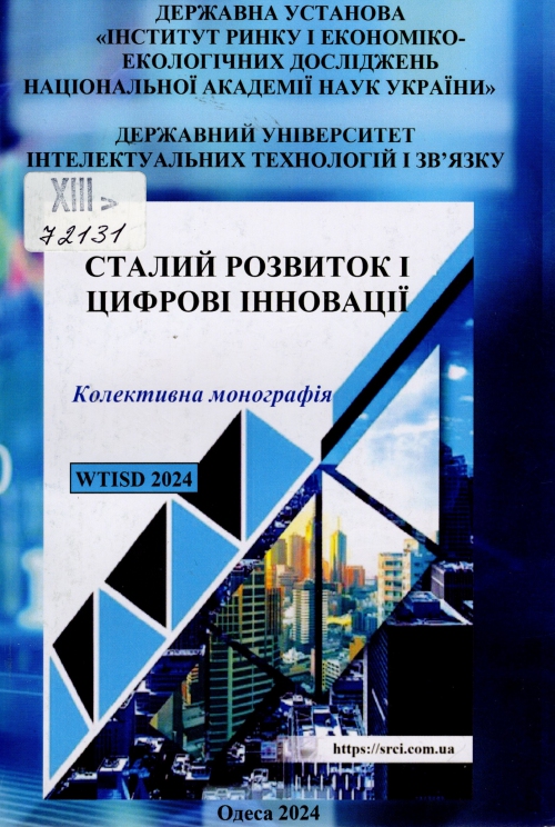 Сталий розвиток і цифрові інновації : кол. монографія / Борис В. Буркинський, Олександр А. Назаренко, Олександр І. Лайко, Світлана К. Хаджирадєва, Юрій Бабич ; ДУ "Ін-т ринку і екон.-екол. досліджень НАН України", Держ. ун-т інтелект. технологій і зв'язку ; за заг. ред. Борис В. Буркинський, Олександр А. Назаренко, Олександр І. Лайко ; передм. Дорін Богдан-Мартін, Томас Ламанаускас, Олександр А. Назаренко. – Одеса : ДУ ІРЕЕД НАН України, 2024. – 542 с. : іл., фотоіл., табл., схеми, портр.