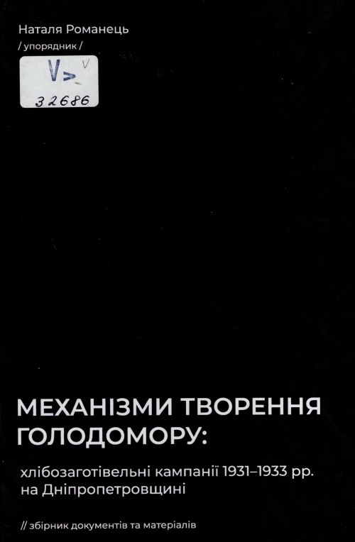Механізми творення Голодомору : хлібозаготівельні кампанії 1931-1933 рр. на Дніпропетровщині : зб. док. та матеріалів / Нац. музей Голодомору-геноциду ; упоряд. і вступ. ст. Наталя Радомирівна Романець. – Житомир : Бук-Друк, 2023. – 767 с. : табл.