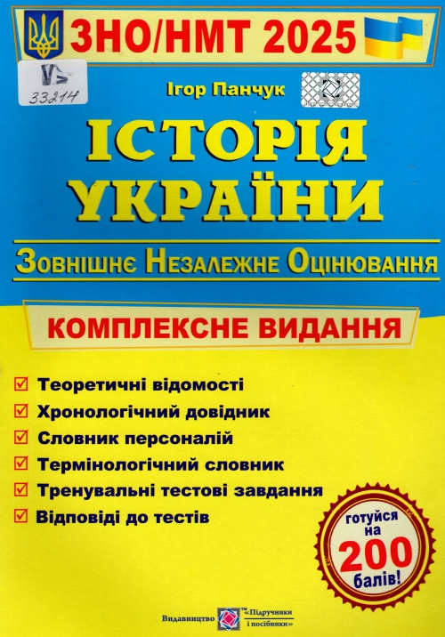 Панчук І. І. Історія України : комплексна підготовка до зовнішнього незалежного оцінювання і державної підсумкової атестації : за чинною програмою ЗНО / Ігор Іванович Панчук. – Тернопіль : Підручники і посібники, 2025. – 463 с. : іл., портр., карти. – (Готуйся на 200 балів!) (ЗНО/НМТ. 2025).