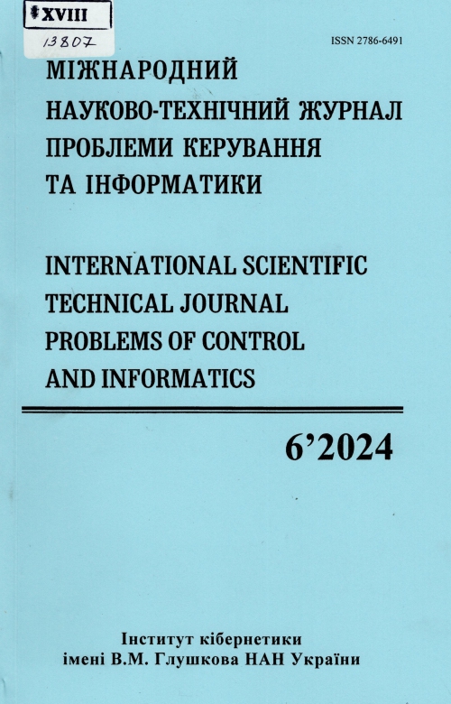 Проблеми керування та інформатики = Internation scientific technical Journal Problems of control and informatics : міжнар. наук.-тех. журн. / Засновник НАН України. Ін-т кібернетики ім. В. М. Глушкова ; гол. ред. А. О. Чикрій. – Київ : Ін-т кібернетики ім. В. М. Глушкова, 2024. – № 6. – 117 с. – Міжнародний науково-технічний журнал проблеми керування та інформатики.