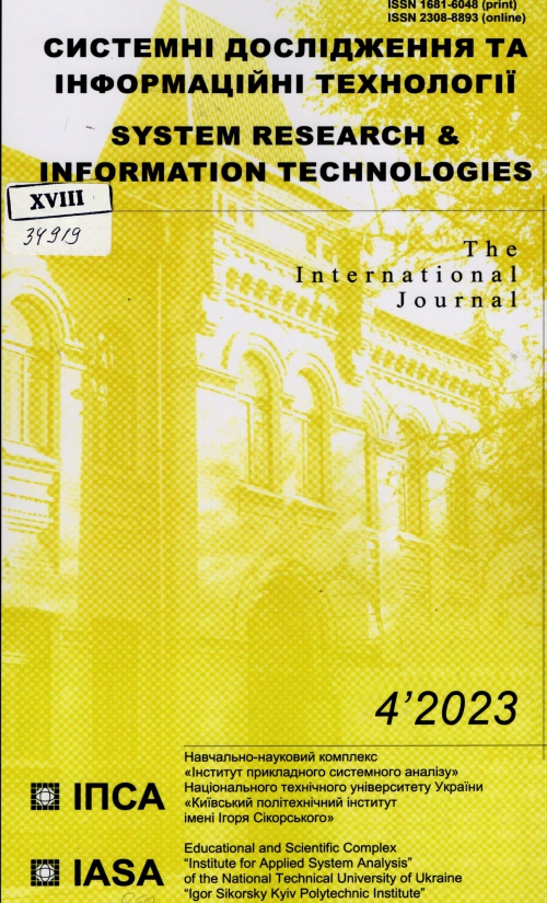 Системні дослідження та інформаційні технології : міжнар. наук.-тех. журн. / Засновник МОН України. Ін-т прикладного та систем. аналізу, Нац. техн. ун-т України "Київський політехнічний інститут ім. І. Сікорського" ; гол. ред. М. З. Згуровський. – Київ : Ін-т приклад. системного аналізу, 2023. – № 4. – 147 с.