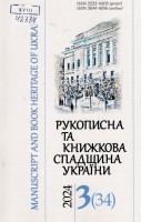 Рукописна та книжкова спадщина України = Manuscript and Book Heritage of Ukraine : наук. журн. / Засновник НАН України, Нац. б-ка України ім. В. І. Вернадського, Ін-т рукопису ; гол. ред. Любов Дубровіна. – Київ : Академперіодика, 2024. – № 3 (34). – 272 с.