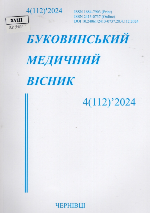 Буковинський медичний вісник : укр. наук.-практ. журн. / Засновник ВДНЗ України "Буковин. держ. мед. ун-т" ; гол. ред. Т. М. Бойчук. – Чернівці : БДМУ, 2024. – Т. 28, № 4 (112). – 94 с.