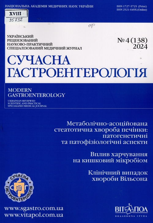 Сучасна гастроентерологія = Modern Gastroenterology : укр. реценз. наук.-практич. спец. журн. / Засновник Нац. акад. мед. наук України, ДУ "Нац. ін-т терапії імені Л. Т. Малої НАМН України", ДУ "Ін-т гастроентерології НАМН України" ; гол. ред. Г. Д. Фадєєнко. – Київ : ВІТ-А-ПОЛ,2024. – № 4 (138). – 118 с.