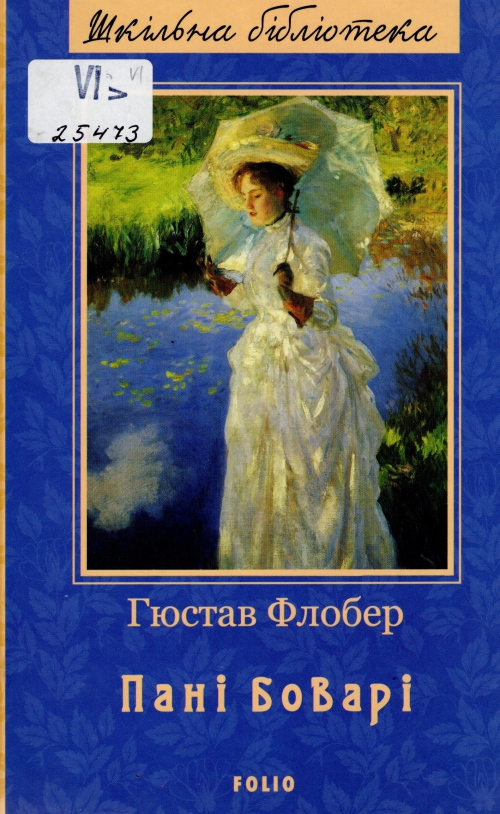 Флобер Г. Пані Боварі : роман, повість : пер. с фр. / Гюстав Флобер ; пер. Микола Лукаш, Михайло Гайдай ; передм. Д. С. Наливайко; Прим. Б. Б. Буніч-Ремізов. – Харків : Фоліо, 2023. – 397, [2] с. : іл.– (Шкільна бібліотека української і зарубіжної літератури).