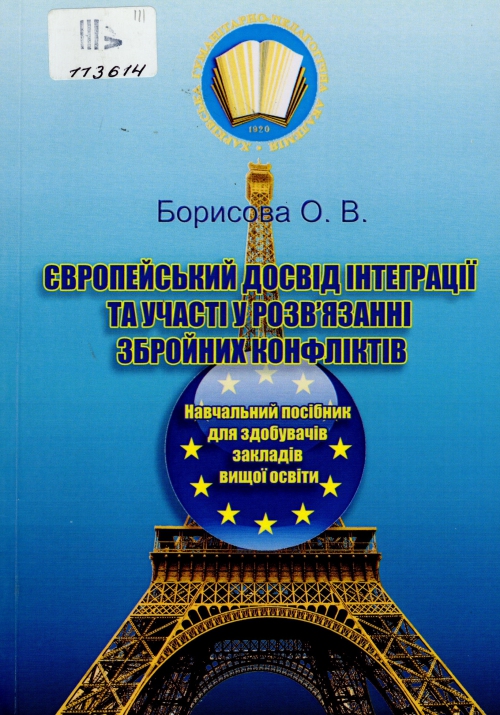 Борисова О. В. Європейський досвід інтеграції та участі у розв'язанні збройних конфліктів : навч. посіб. для здобувачів закл. вищ. освіти / Ольга Василівна Борисова ; Департамент науки і освіти Харків. обл. держ. адм., Комунал. заклад "Харків. гуманіт.-пед. акад." Харків. обл. ради. – Харків : Бровін О. В., 2024. – 199 с. : іл., портр.