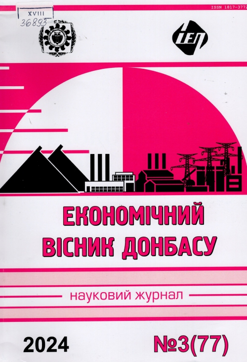 Економічний вісник Донбасу = ЭкономическийвестникДонбасса = EconomicheraldoftheDonbas : наук. журн. / Засновник ДЗ "Луган. нац. ун-т ім. Тараса Шевченка", НАН України, Ін-т економіки пром-сті ; гол. ред. В. І. Лященко.- Луганськ ; Київ; Старобільськ : Альма-матер, 2024. – № 3 (77). – 225 с.
