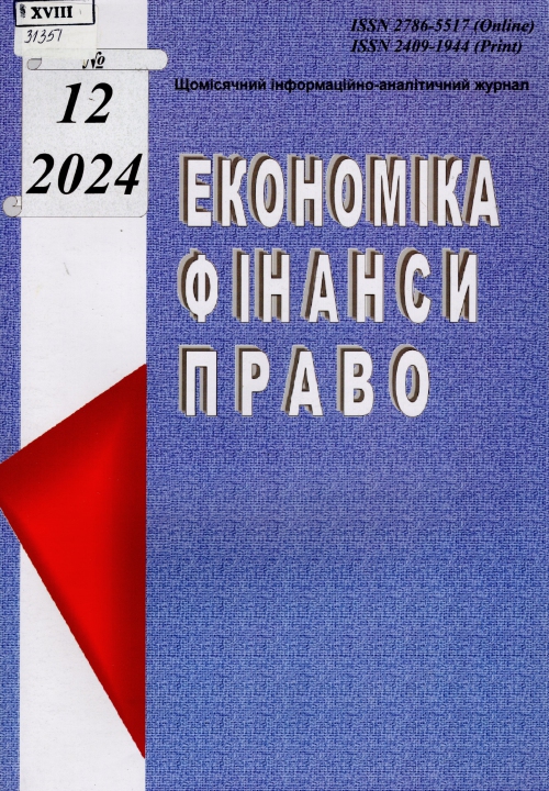 Економіка. Фінанси. Право = Economics. Finances. Law : щоміс. інформ.-аналіт. журн. / Засновник Аудит. фірма "Аналітик" ; гол. ред. Валентина Петрівна Левченко. – Київ : [б.в.], 2024. – № 12. – 84 с.