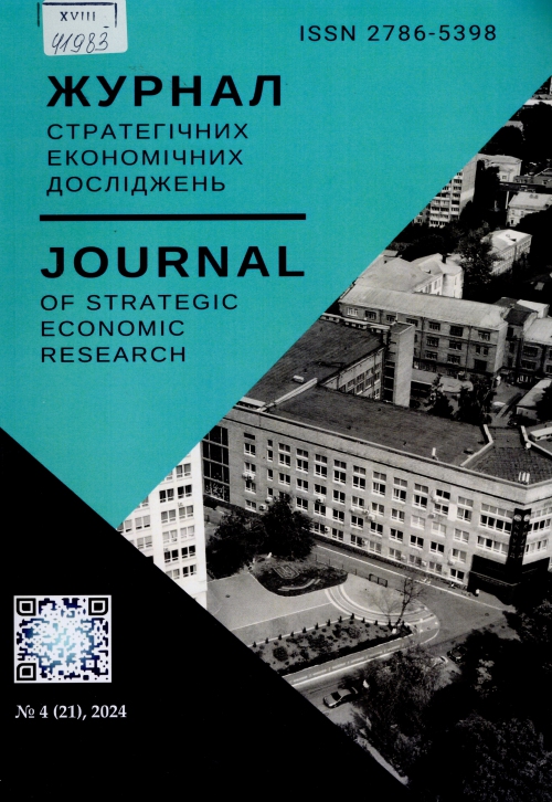 Журнал стратегічних економічних досліджень = Journalofstrategiceconomicresearch : наук. фах. вид. / Засновник Київ. нац. ун-т технологій та дизайну ; гол. ред. І. М. Грищенко. – Київ : КНУТД, 2024. – № 4 (21). – 138 с.