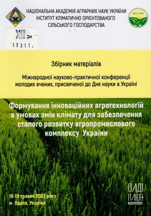 Формування інноваційних агротехнологій в умовах змін клімату для забезпечення сталого розвитку агропромислового комплексу України = : зб. матеріалів Міжнар. наук.-практ. конф. мол. вчених, присвяч. до Дня науки в Україні, 18-19 травня 2023 р., м. Одеса, Україна / Ін-т кліматично орієнтованого сільського господарства НААН України ; гол. редкол. Раїса А. Вожегова ; редкол. Віктор Ф. Камінський, Алла А. Стоянова. – Одеса : Олді+, 2023. – 178 с. : іл., табл.