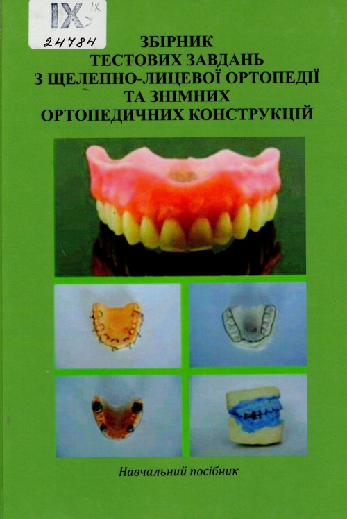 Збірник тестових завдань з щелепно-лицевої ортопедії та знімних ортопедичних конструкцій : навч. посіб. / ДВНЗ "Ужгород. нац. ун-т" ; уклад. Є. Ю. Локота, С. Б. Костенко, В. І. Палійчук. – Ужгород : УжНУ "Говерла", 2024. – 254, [1] с.