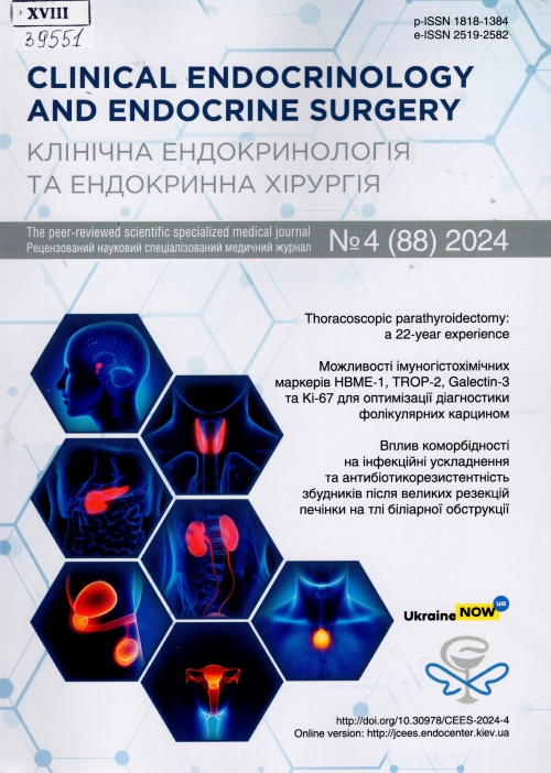 Клінічна ендокринологія та ендокринна хірургія = Clinical endocrinology and endocrine surgery : наук. мед. журн. / Засновник Укр. наук.-практ. центр ендокринної хірургії, трансплантації ендокринних органів і тканин ; гол. ред. Н. Б. Зелінська. – Київ : УНПЦЕХ , ТЕОіТ, 2024. – № 4 (88). – 94 с.
