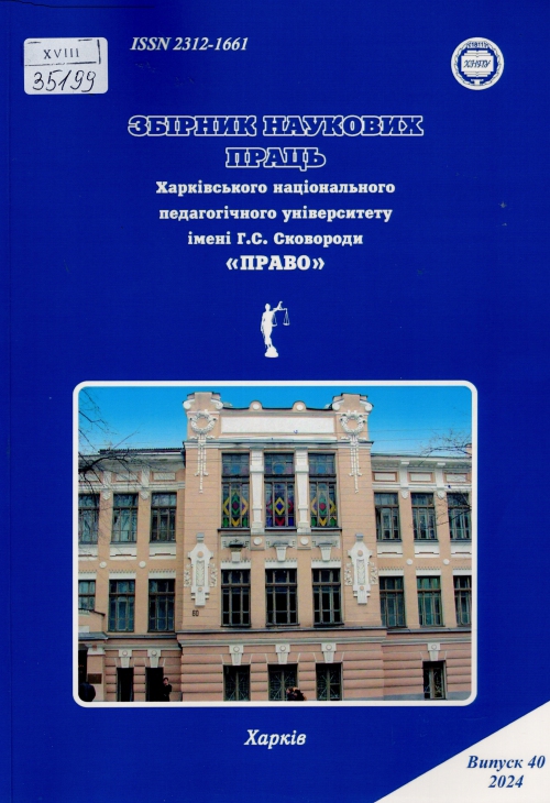 Збірник наукових праць Харківського національного педагогічного університету імені Г. С. Сковороди. "Право" : наук. видання / Засновник Харків. нац. пед. ун-т ім. Г. С. Сковороди; гол. ред. Віктор Олександрович Процевський.– Харків : [б.в.], "Право".– 2024.– Вип. 40.– 363 с.