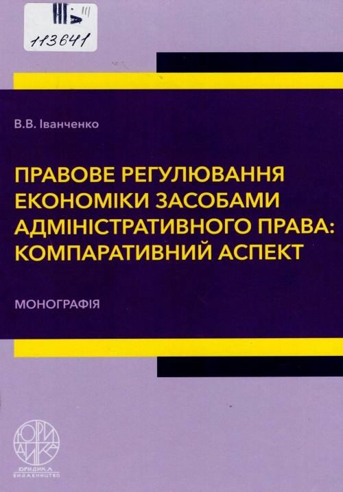 Іванченко В. В.Правове регулювання економіки засобами адміністративного права: компаративний аспект : монографія / Володимир Валентинович Іванченко ;Одес. держ. ун-т внутрішніх справ; за наук. ред. В. П. Маковій.– Одеса : Юридика, 2023.– 281 с.