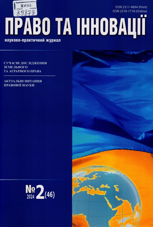Право та інновації = LawandInnovations : наук.-практ. журн. / Засновник Наук.-дослід. ін-т прав. забезп. інновац. розвитку НАПрН України; гол. ред. С. М. Прилипко.– Харків : Юрайт, 2024.– № 2 (46).– 215 с.