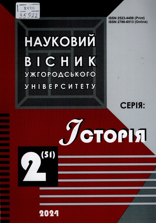 Науковий вісник Ужгородського університету. Серія: Історія : зб. наук. пр. / Засновник ДВНЗ "Ужгород. нац. ун-т"; гол. ред. Юрій Данилець.– Ужгород : УжНУ "Говерла", 2024.– Вип. 2 (51).– 155 с.