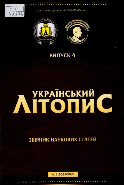Український літопис = Ukrainianlitopys : зб. наук. пр. / Засновник Ун-т Григорія Сковороди в Переяславі; гол. ред. В. К. Молоткіна.– Переяслав : [б.в.], 2024.– Вип. 4.– 150 с.