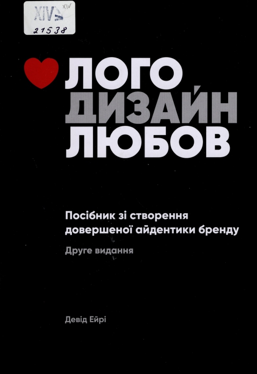 Ейрі Девід. Лого. Дизайн. Любов : посібник зі створення довершеної айдентики бренду : пер. с англ. / Девід Ейрі; пер. Надія Сич.– 2-ге вид.– Київ : ArtHuss, 2024.– 230,[1] с. : іл., фотоіл.– Логодизайнлюбов.