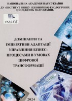 Домінанти та імперативи адаптації управління бізнес-процесами в умовах цифрової трансформації : монографія / Тетяна Василівна Уманець, Наталія Леонідівна Шлафман, Світлана Олексіївна Даниліна, Г. В. Карпінська, Н. А. Клєвцєвич ; ДУ "Ін-т ринку і екон.-екол. досліджень НАН України"; за заг. ред. Тетяна Василівна Уманець.– Одеса : ДУ ІРЕЕД НАН України, 2024.– 396 с. : іл., табл., схеми.