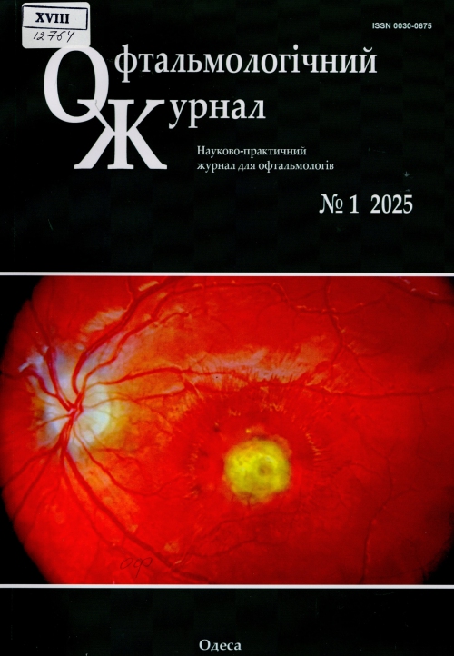 Офтальмологічний журнал = Офтальмологический журнал : наук.-практ. журн. для офтальмологів / Засновник ДУ "Ін-т очних хвороб і тканинної терапії ім. В. П. Філатова НАМН України"; гол. ред. Н. В. Пасєчнікова. – Одеса : [б.в.], 2025. – № 1 (552). – 68 с.