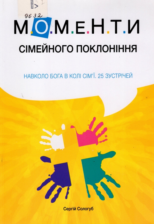 Сологуб С. М.О.М.Е.Н.Т.И сімейного поклоніння : навколо Бога в колі сім'ї. 25 зустрічей : медіакнига : пер. с рус. / Сергій Сологуб. – Київ : MissionEurasia, 2021. – 198 с. : табл., QR-коди.– Моменти сімейного поклоніння