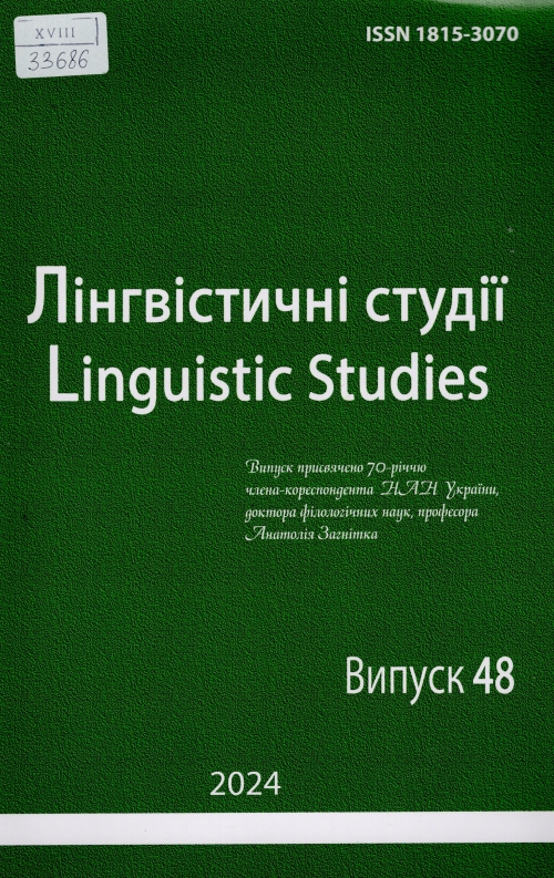 Лінгвістичні студії = Linguisticstudies : міжнар. зб. наук. пр. / Засновник Донец. нац. ун-т ім. Василя Стуса ; гол. ред. Анатолій Загнітко. – Донецьк; Вінниця : ДНУ ім. В. Стуса, 2024. – Вип. 48. – 196 с.