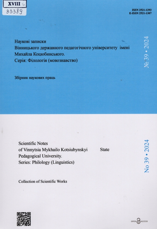 Наукові записки Вінницького державного педагогічного університету імені Михайла Коцюбинського. Серія: Філологія (мовознавство) : зб. наук. пр. / Засновник Вінниц. держ. пед. ун-т ім. М. Коцюбинського ; гол. ред. І. Я. Завальнюк. – Вінниця : ВДПУ, 2024. – № 39. – 139 с.