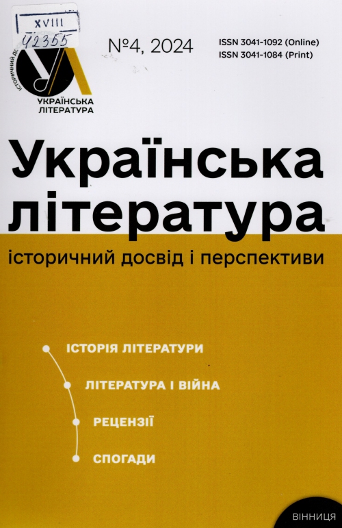 Українська література: історичний досвід і перспективи : наук. журн. / Засновник Вінниц. держ. пед. ун-т ім. М. Коцюбинського ; гол. ред. Алла Віннічук ; гол. редкол. Юрій Ковалів. – Вінниця : ВДПУ, 2024. – № 4.– 126 с.