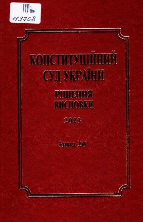 Книга містить рішення Конституційного Суду України, ухвалені у 2023 році, та їх резюме англійською мовою. Крім того, додаються окремі думки суддів Конституційного Суду України стосовно цих актів Конституційного Суду України. Видання розраховане на фахівців органів законодавчої, виконавчої та судової влади, депутатів, юристів-практиків, наукових працівників, викладачів, аспірантів, студентів юридичних вузів, а також усіх, хто цікавиться питаннями конституційної юрисдикції в Україні.