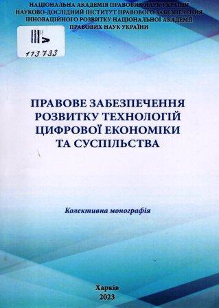 Правове забезпечення розвитку технологій цифрової економіки та суспільства : кол. монографія / М. Г. Хаустова, Д. І. Шматков, І. О. Мамаєв, П. М. Дуравкін, І. І. Гафич ; Нац. акад. правових наук України, Наук.-дослід. ін-т прав. забезп. інновац. розвитку НАПрН України ; за ред. О. В. Шаповалова, К. В. Єфремова ; вступ Сергій Глібко, К. В. Єфремова. – Харків : НДІ прав. забезп. інновац. розвитку НАПрН України, 2023. – 290 с. : табл.