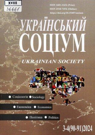 Український соціум : наук. журн. / Засновник НАН України. Ін-т економіки та прогнозування, Укр. ін-т соц. дослід. ім. О. Яременка, Ін-т демогр. та соц. дослідж. ім. М. В. Птухи НАН України ; гол. ред. О. М. Балакірєва. – К. : Ін-т екон. та прогнозув. НАН України : Укр. ін-т соц. дослідж. ім. О. Яременка, 2024. – № 3/4 (90/91). – 141 с.
