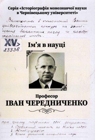 Ім'я в науці. Професор Іван Чередниченко : монограф.-довід. вид. / Чернів. нац. ун-т ім. Ю. Федьковича ; упоряд. і відп. ред. Олена Валентинівна Кульбабська ; упоряд. Наталія Олександрівна Шатілова, Оксана Василівна Максим'юк. – Чернівці : Чернів. нац. ун-т ім. Ю. Федьковича, 2024. – 511, [6] с. : іл., табл., портр. – (Історіографія мовознавчої науки в Чернівецькому університеті).