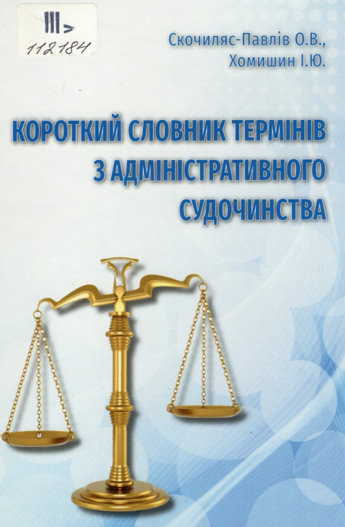 Короткий словник термінів з адміністративного судочинства / Нац. ун-т "Львівська політехніка". Ін-т права, психології та інновац. Освіти ; уклад. О. В. Скочиляс-Павлів, І. Ю. Хомишин. – Київ : Вид-во Людмила, 2022. – 135 с.
