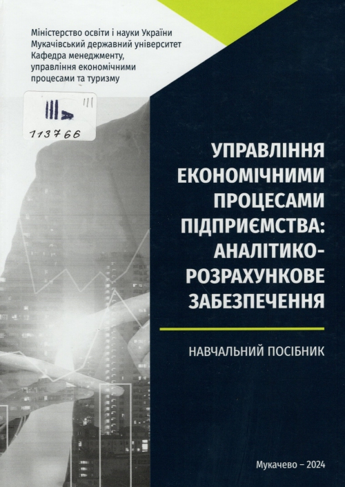 Управління економічними процесами підприємства: аналітико-розрахункове забезпечення : навч. посіб. / Мукачів. держ. ун-т, Каф. менеджменту, упр. екон. процесами та туризму ; за заг. ред. В. Ф. Проскура ; уклад. В. В. Гоблик, Н. М. Гоблик-Маркович, О. В. Зарічна. – Мукачево : МДУ, 2024. – 274 с. : табл.