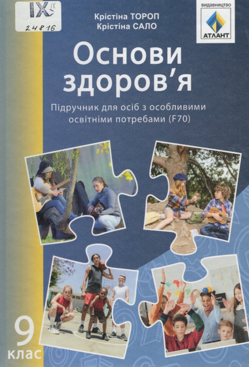 Тороп К. С. Основи здоров'я. 9 клас : підруч. для осіб з особливими освіт. потребами (F70) / Крістіна С. Тороп, Крістіна М. Сало. – Київ : Атлант, 2024. – 127 с. : мал.