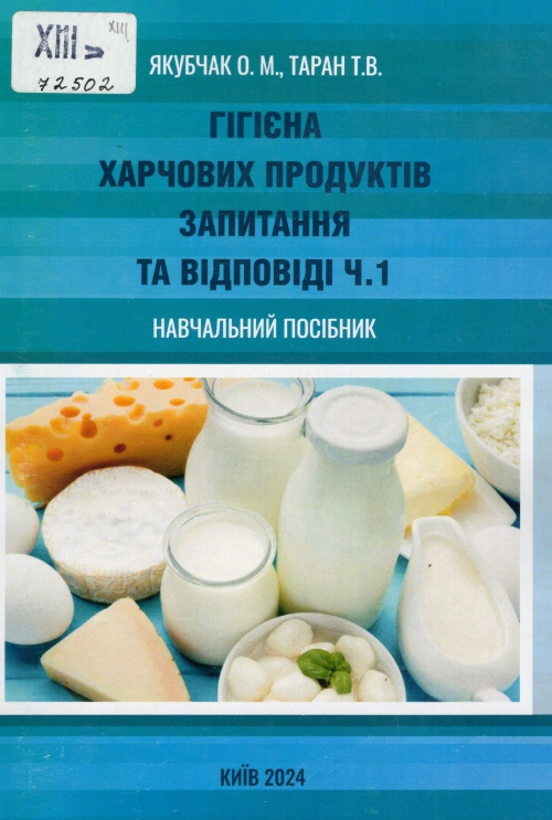 Якубчак О. М. Гігієна харчових продуктів. Запитання та відповіді : навч. посіб. / Ольга Миколаївна Якубчак, Тетяна Володимирівна Таран. – Київ : Компринт, 2024.