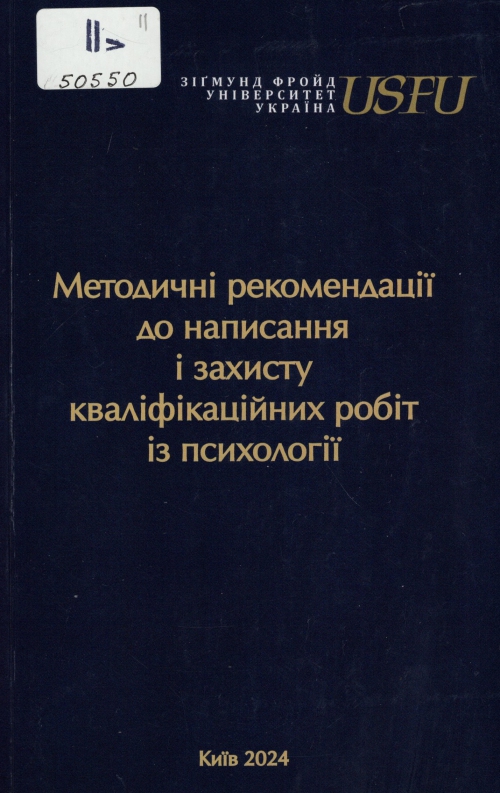 Методичні рекомендації до написання і захисту кваліфікаційних робіт із психології : для студентів другого (магістерського) рівня вищ. освіти (спец. 053 "Психологія") / Зіґмунд Фройд Ун-т Україна, Ф-т психології ; уклад. Гелена Петрівна Лазос, М. С. Великодна, Л. М. Карамушка. – Київ : ВЦ "Академія", 2024. – 58 с. : табл.